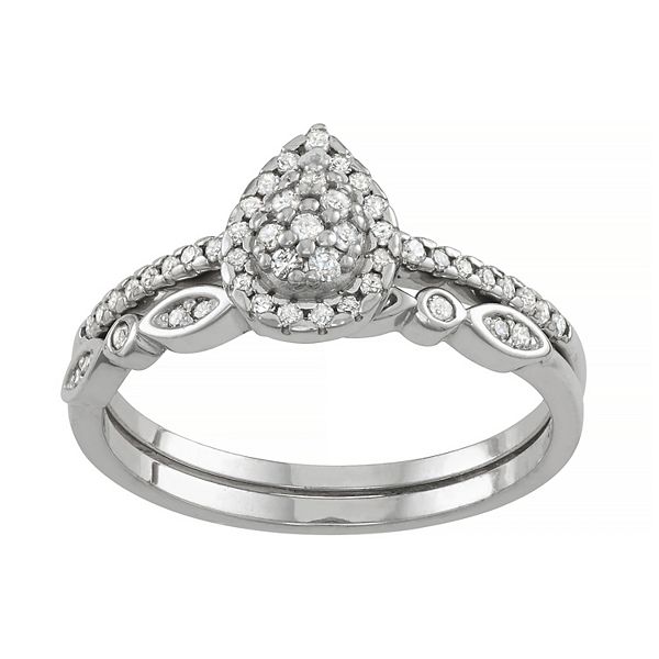 Tiara Sterling Silver 1 3 Carat T W Diamond Teardrop Engagement Ring Set